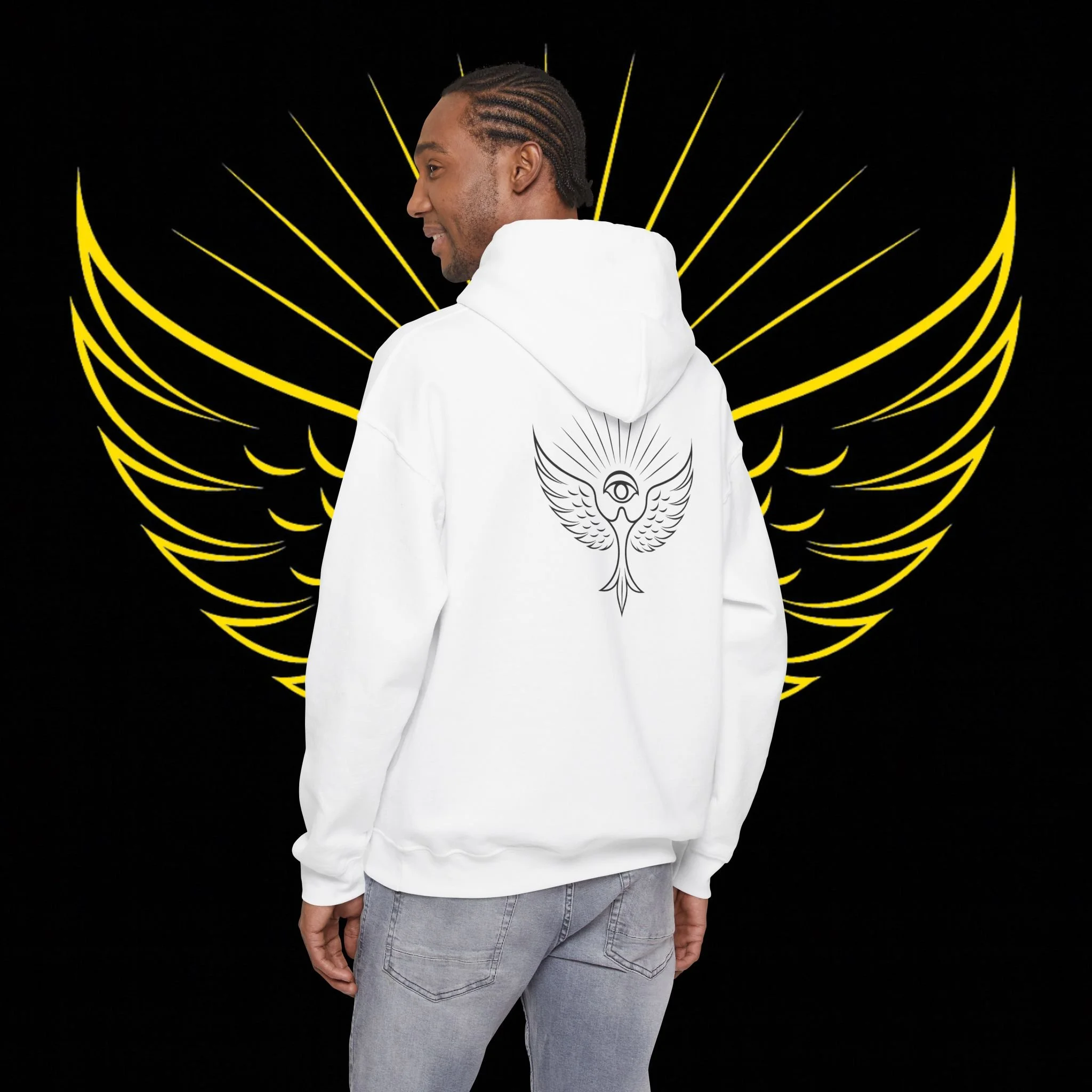 A beacon of awakening and reclaiming, this hoodie is designed for the awakened souls who remember their mission. It provides warmth and durability, with a unisex fit for everyday versatility. The purchase supports seeding the Yellow Bird Mission, raising collective consciousness through love. Perfect for chilly days, this hoodie balances comfort and longevity, with a stylish flair and convenience of spacious pockets and a drawstring hood. Relevant for those seeking a soulful connection and inner awakening, especially during spiritual observances and community-building events.